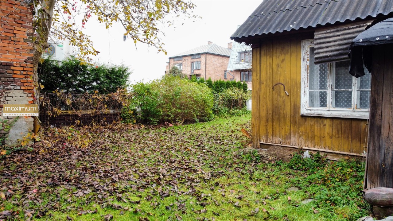 Z przodu działki znajduje się budynek drewniany do rozbiórki.