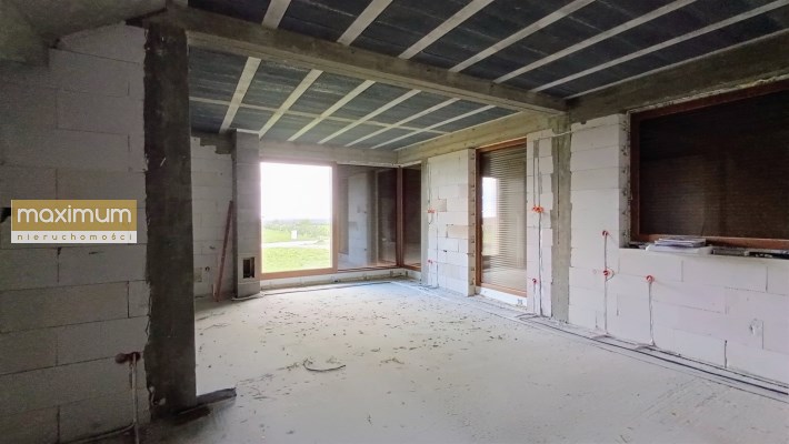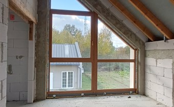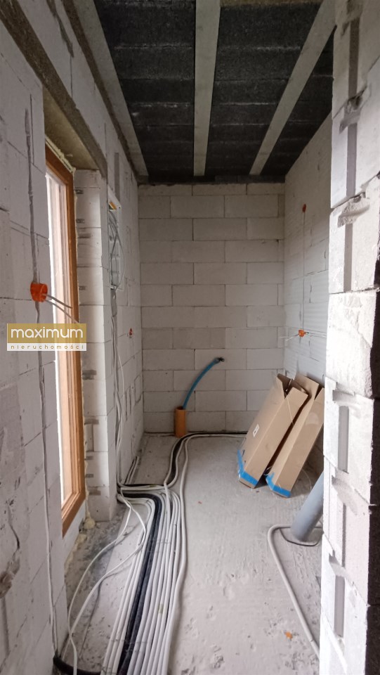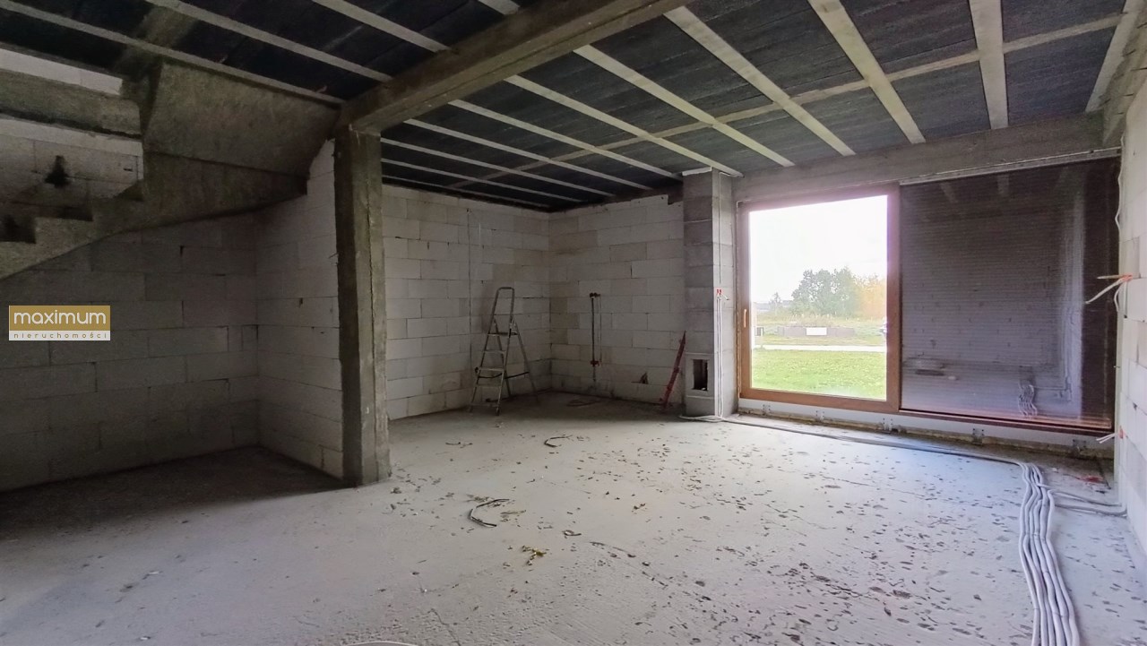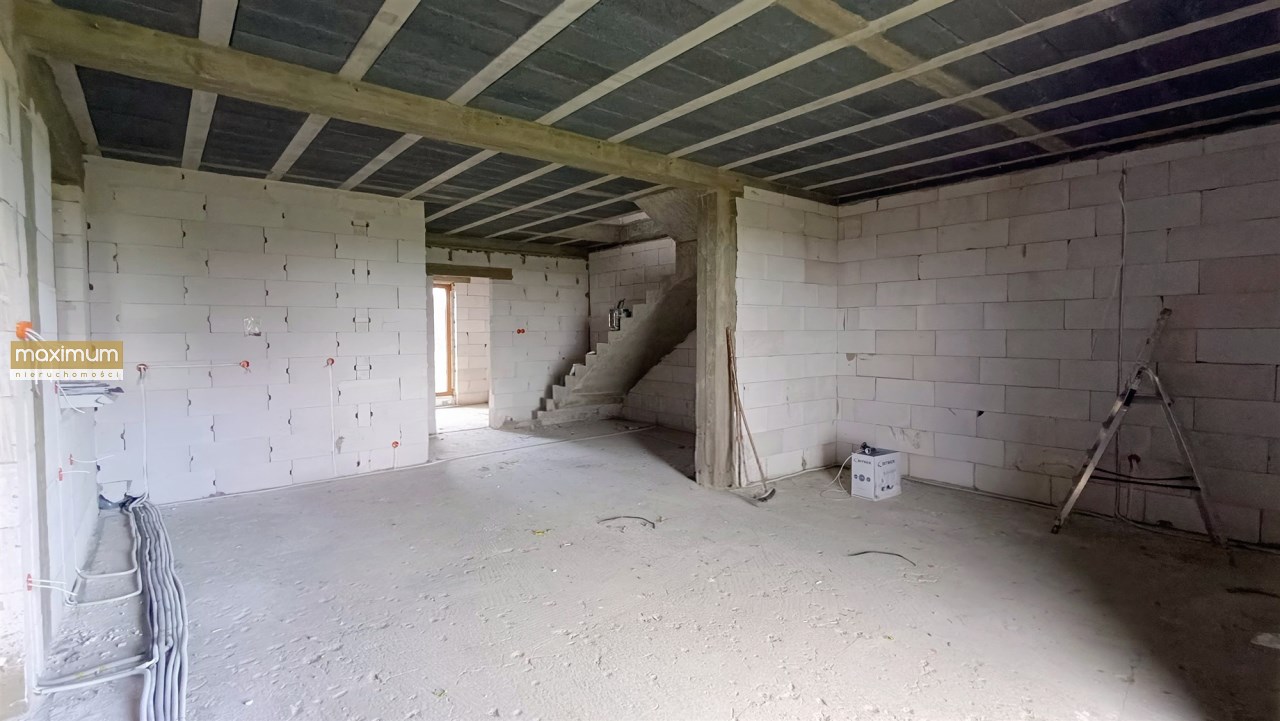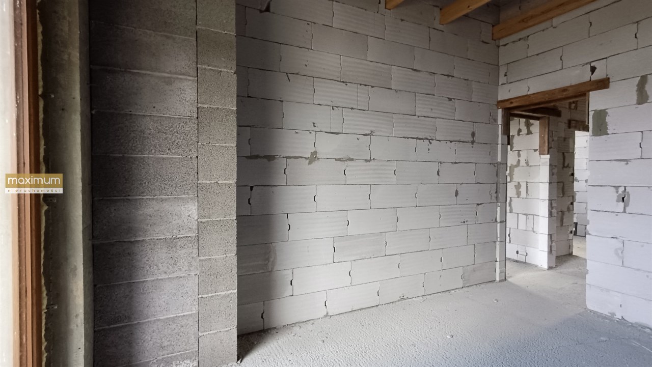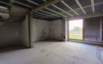Budowa domu została rozpoczęta w 2024 roku. Cały budynek jest murowany, a elewacja została docieplona, co przekłada się na oszczędność energii. Wszystkie pomieszczenia są doskonale doświetlone dzięki dużym, energooszczędnym 3 szybowym oknom.