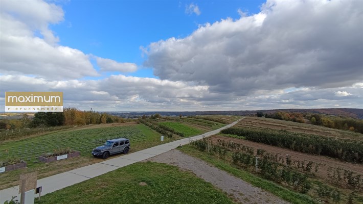 - nieruchomość zlokalizowana na wzgórzu w sąsiedztwie zabudowy jednorodzinnej i działek rolnych.