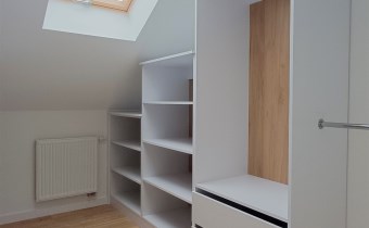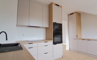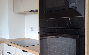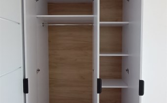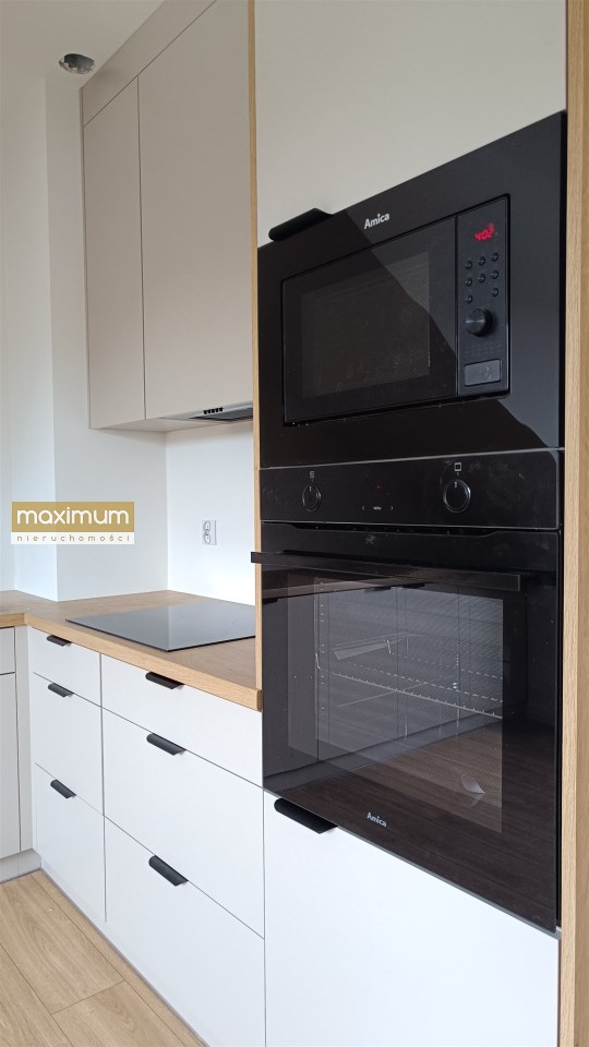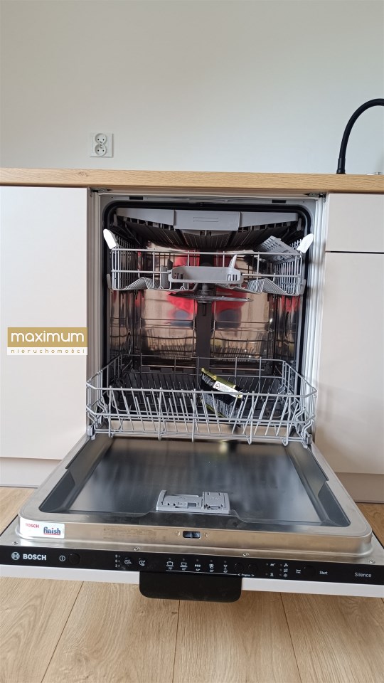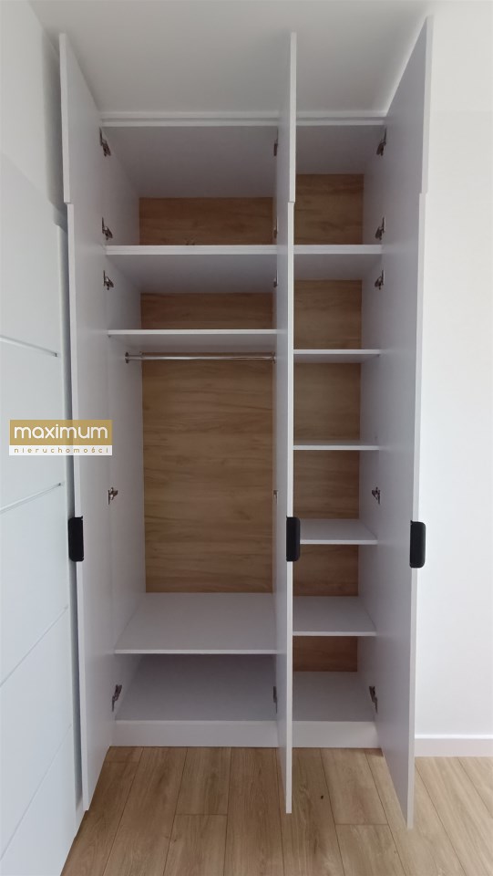 Mieszkanie M10 wykończone, z gotową zabudową na wymiar w kuchni wraz ze sprzętem AGD [płyta, okap, zmywarka, piekarnik, mikrofalówka, lodówka], z szafami na wymiar w sypialniach i garderobie Stan wykończenia: gładzie, panele podłogowe, listwy przypodłogowe, brodzik i kabina prysznicowa, zabudowa pieca CO, parapety, drzwi wewnętrzne.