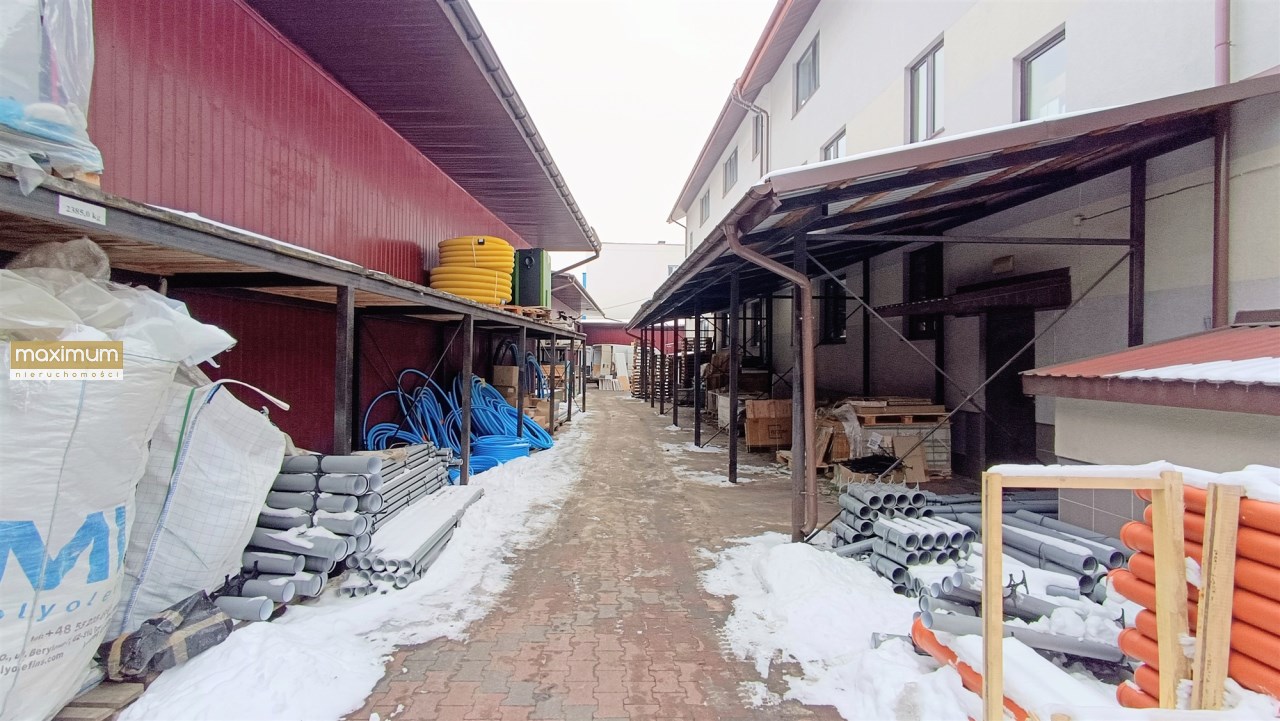Budynek usługowo-handlowy 1300 m2 i 130 m2, budynki magazynowe 190 m2 i 140 m2